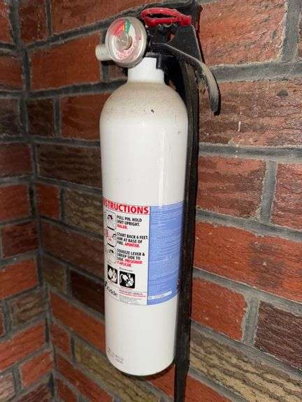 LOT 59 - Fire extinguisher in green bring tools for bracket • Sunroom porch